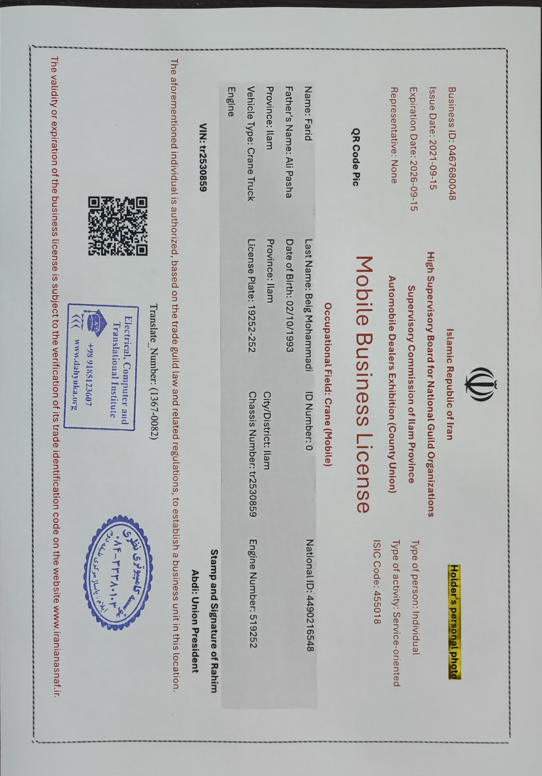 This document was handed over to us for translation by Mrs. Sogand Tarzifard in 09/20/2023 (Figure 1). After his Request, this marked section (red Color) has been translated by us (Figure 2).